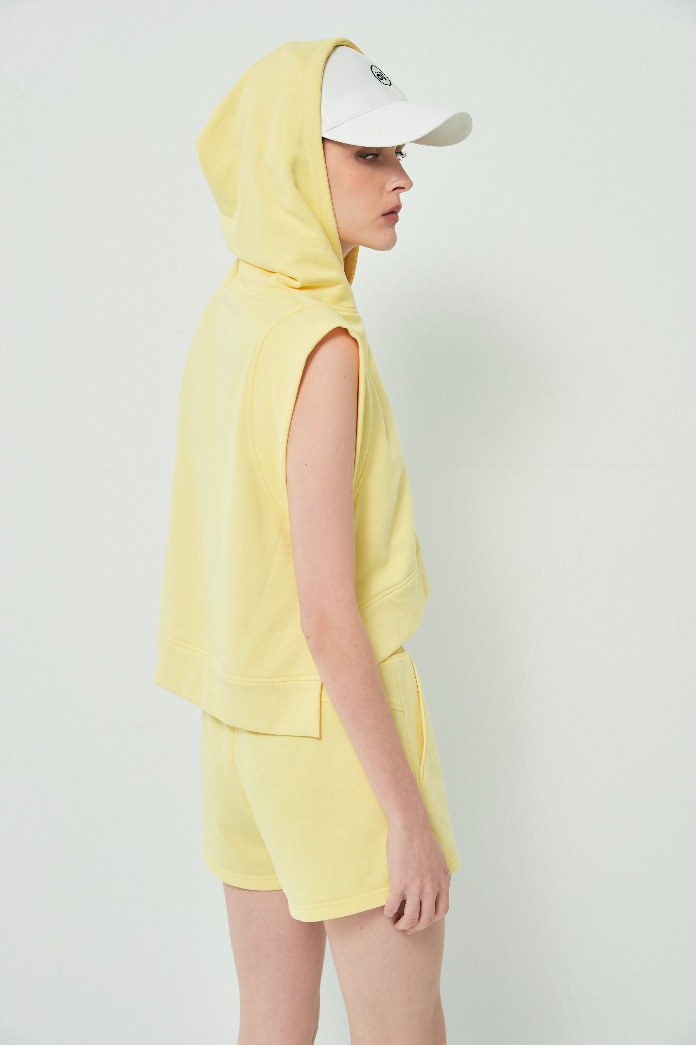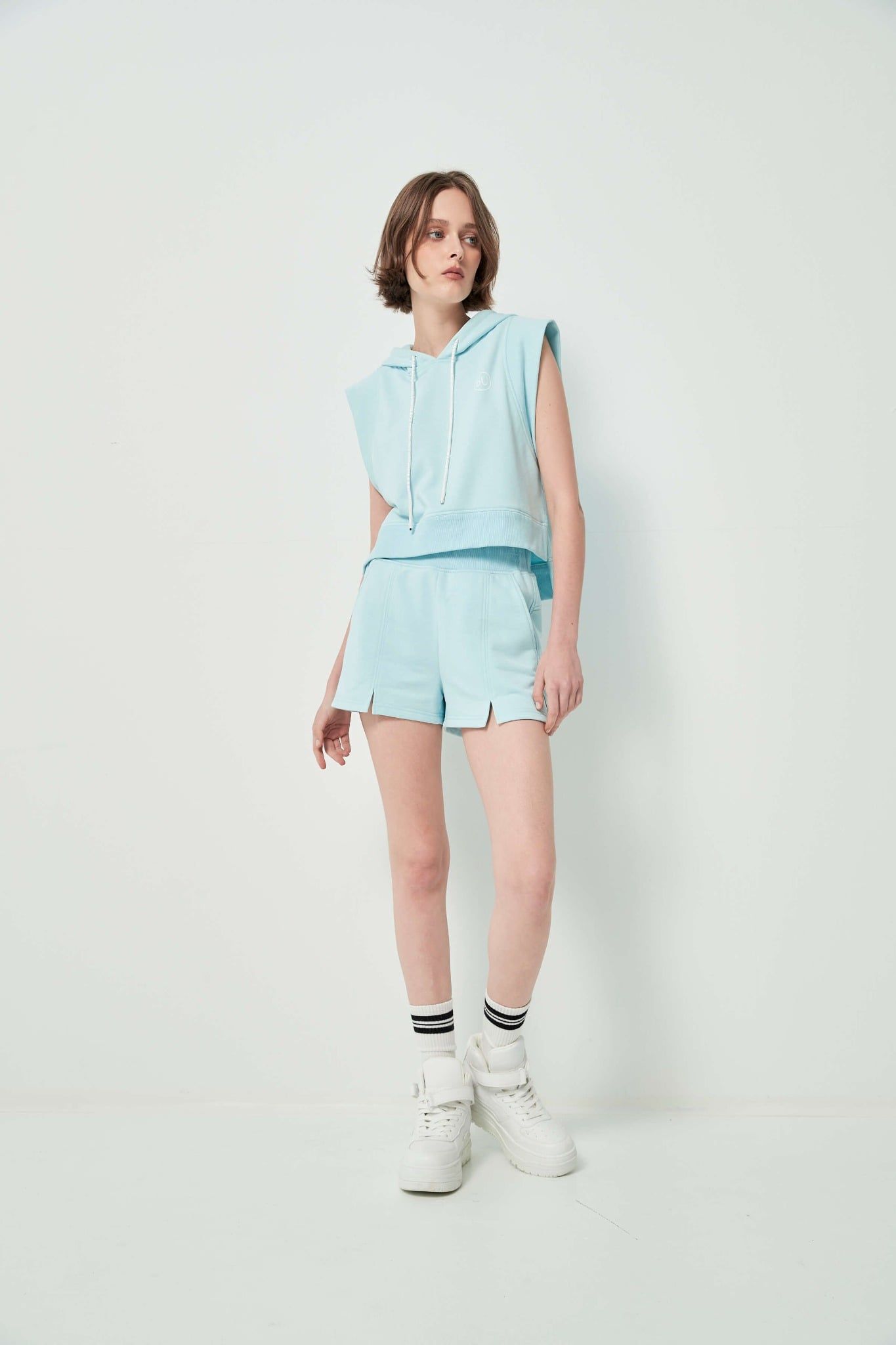 Công thức: Áo có mũ với Chân váy midi xòe hoặc Quần short jeans, phối cùng giày bốt cổ thấp hoặc sandal thể thao.
