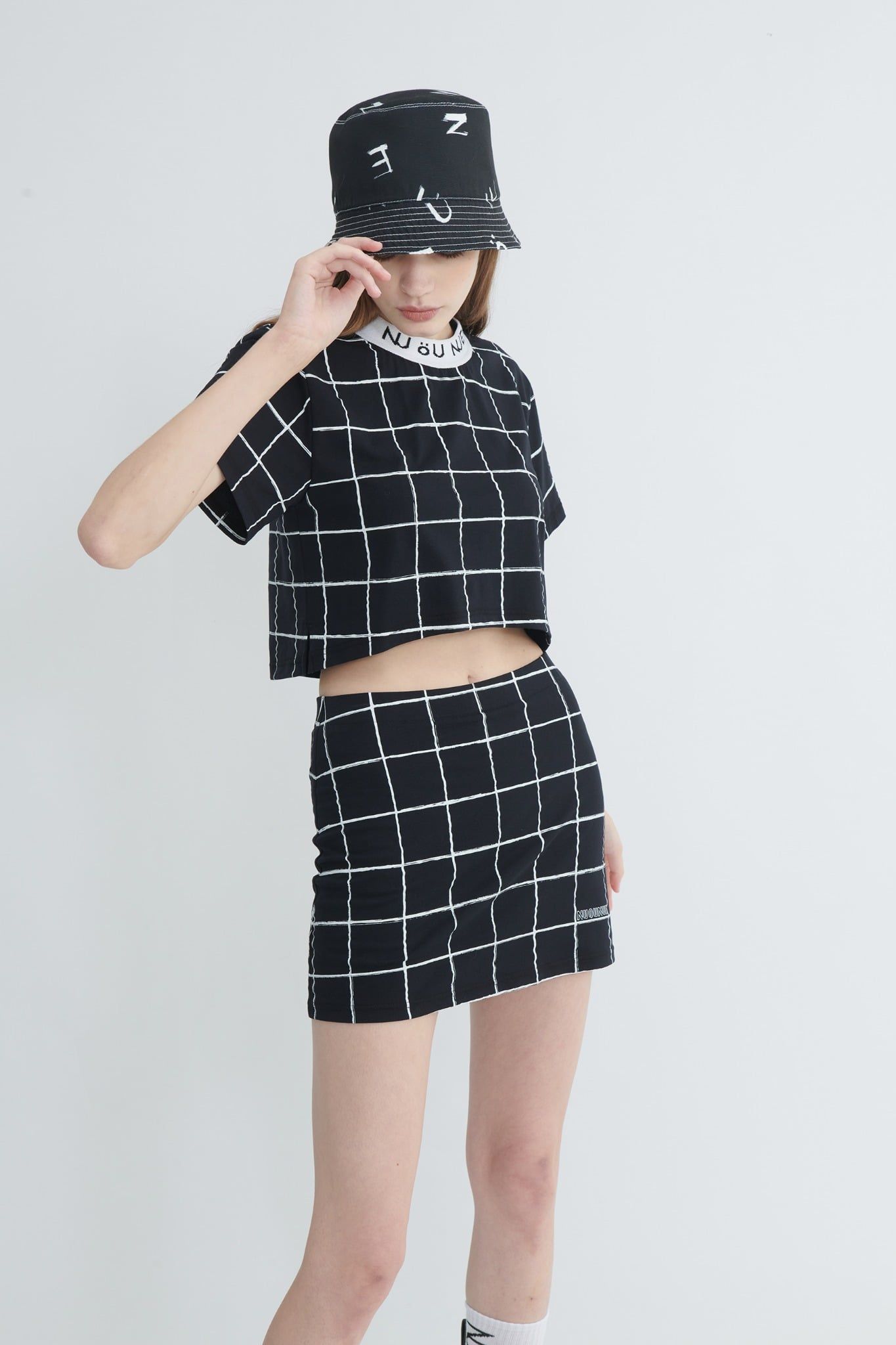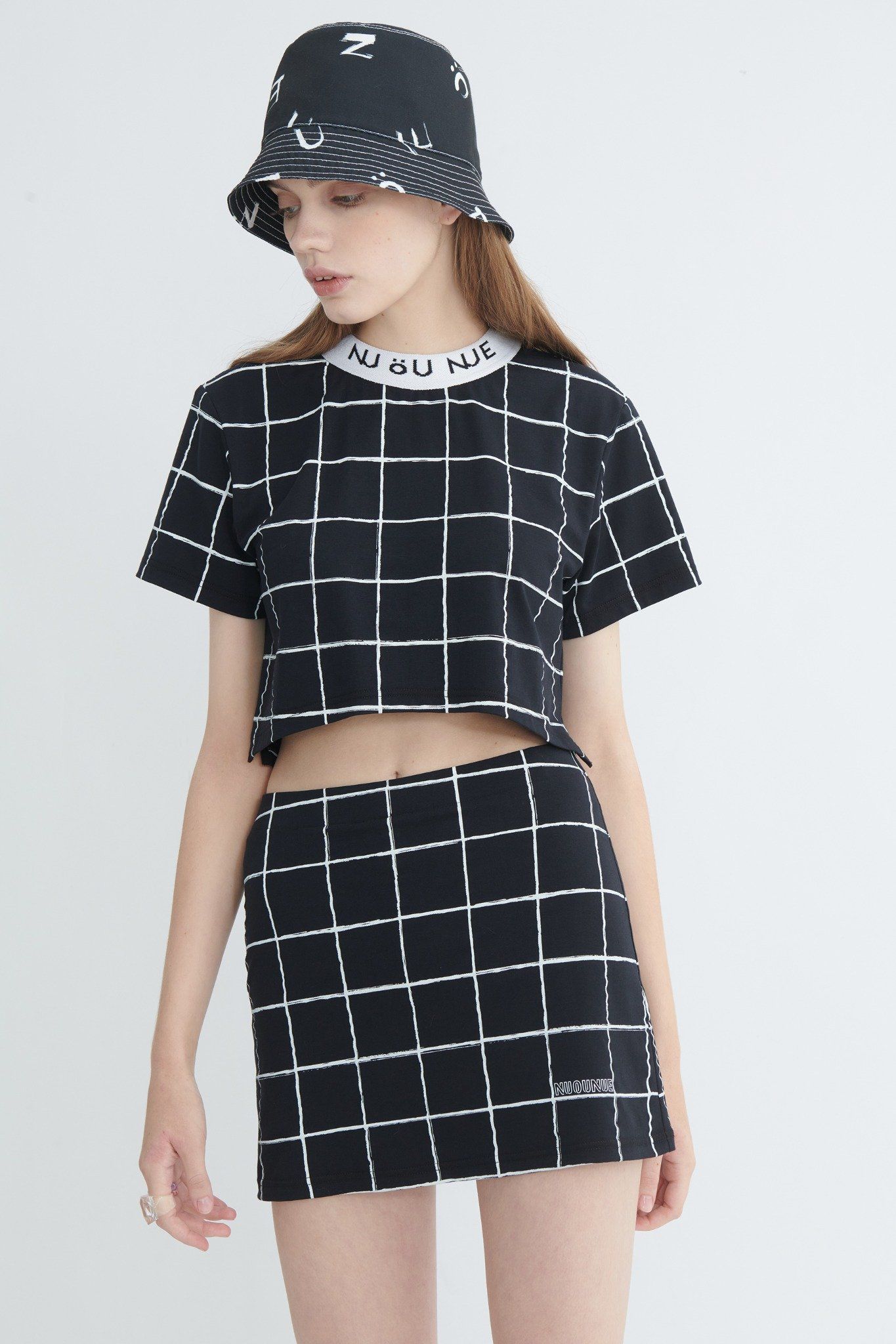 Áo Croptop Đen Kẻ Caro Cổ In Chữ mang vibe trẻ trung và cá tính.