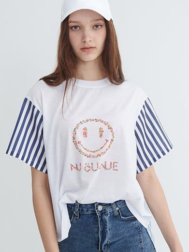 Thiết kế phong cách thủy thủ, độc đáo với thân có họa tiết Smiley (mặt cười) hoa nhí, tay áo và tà sau phối sọc dọc màu sắc khác nhau tạo hiệu ứng patchwork (ghép mảng) cực kỳ cá tính, đảm bảo mang lại vẻ ngoài trẻ trung và hút mắt cho bạn.