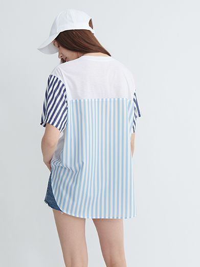 Áo dáng rộng phối sọc thủy thủ