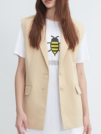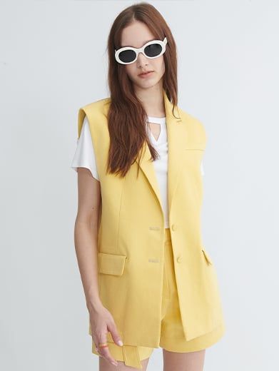 Áo khoác dáng vest không tay, form suông dài tạo hiệu ứng thanh thoát và hiện đại. Thiết kế cổ ve truyền thống kết hợp hàng cúc giữa giúp dễ điều chỉnh khi mặc. Hai túi nắp phía trước và chi tiết giả túi ngực tạo điểm nhấn tinh tế, mang đến vẻ sang trọng nhưng vẫn phóng khoáng. Phù hợp để phối cùng áo croptop, quần shorts hoặc chân váy cho phong cách smart-casual hiện đại.