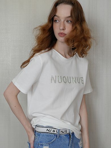 Áo Tee Trắng Basic Đính Đá Họa Tiết Chữ Logo