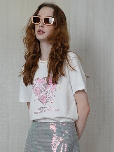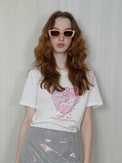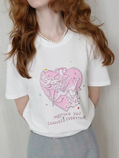 Áo Tee Trắng Họa Tiết Cupid Lãng Mạn