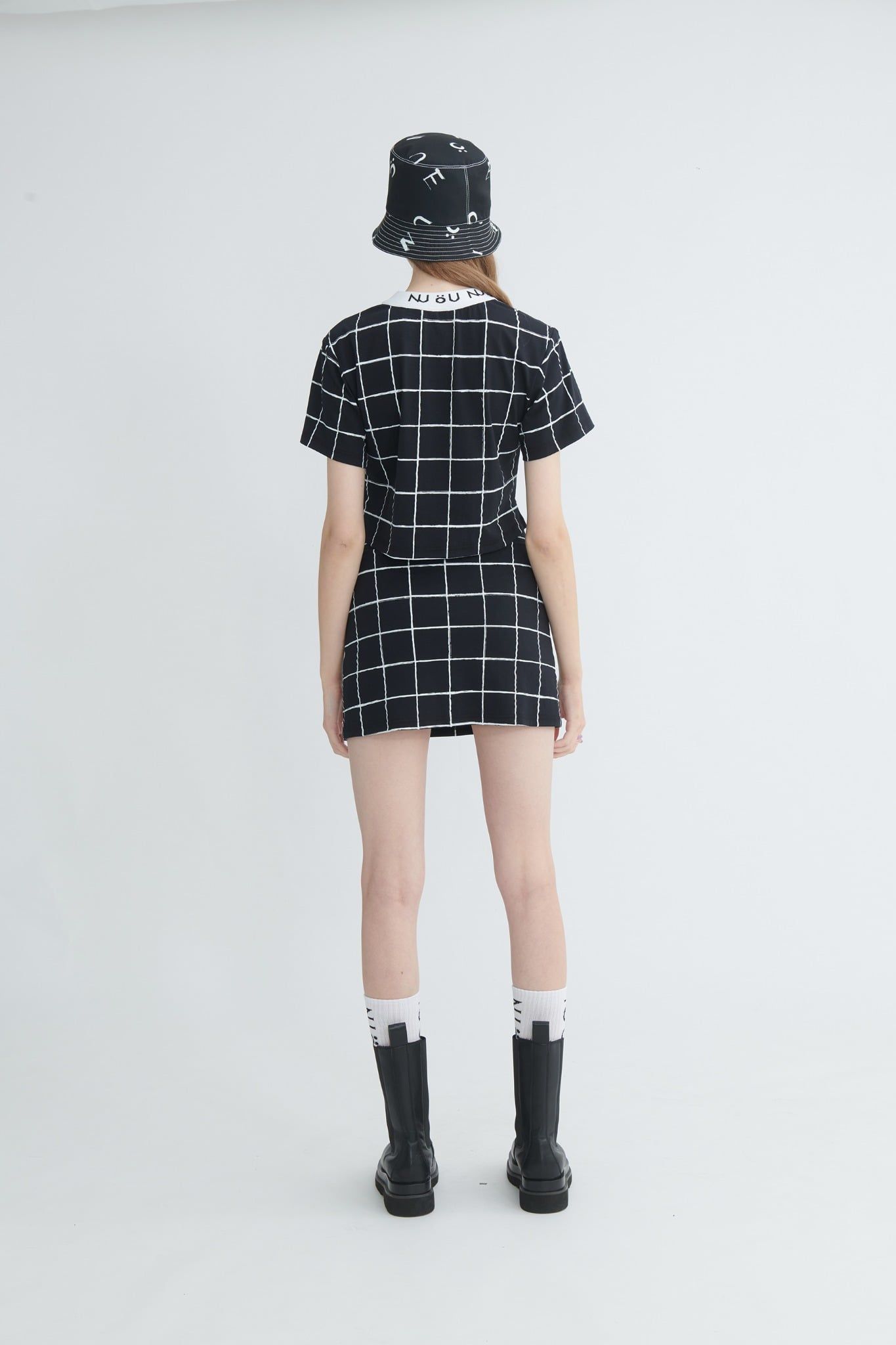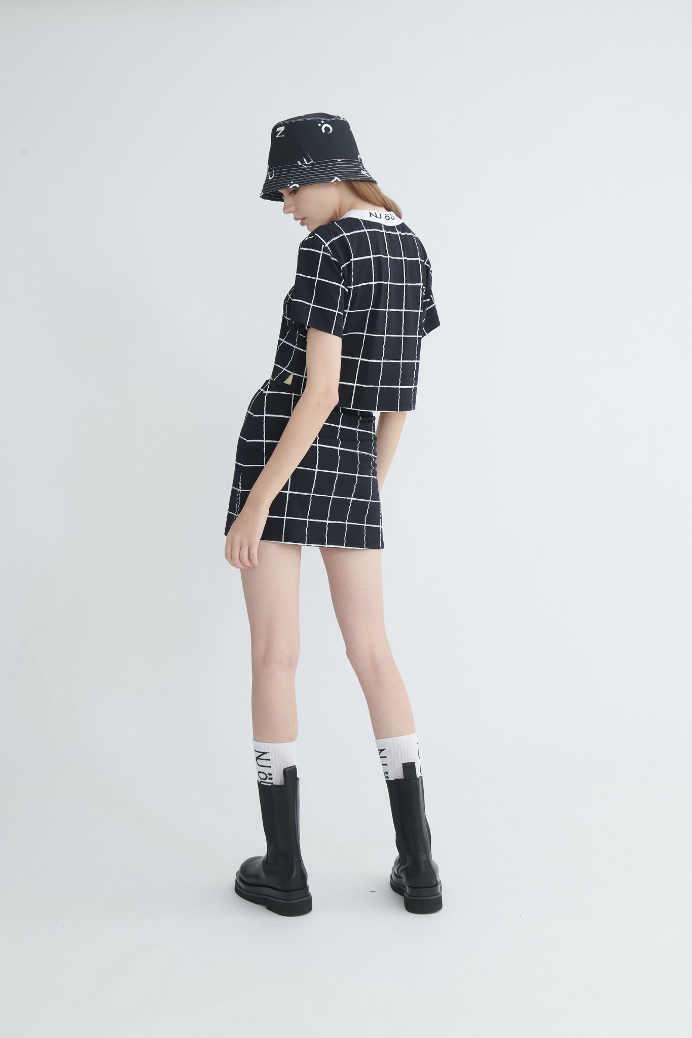 Họa tiết caro trắng trên nền đen mang cảm giác modern và dễ phối đồ.