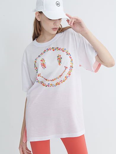 Đầm oversize họa tiết Smiley (mặt cười) được tạo nên từ vô số bông hoa nhí rực rỡ mang đến vẻ ngoài vui tươi và đáng yêu, dễ dàng biến hóa thành đầm dạo phố hay áo thun casual cá tính.