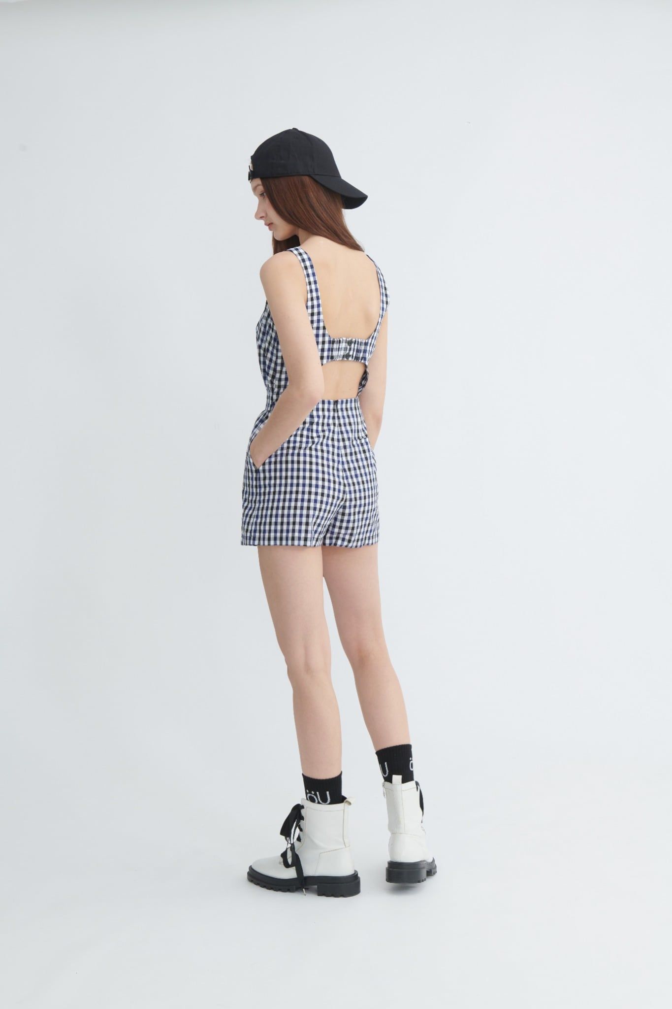 Jumpsuit caro đen trắng