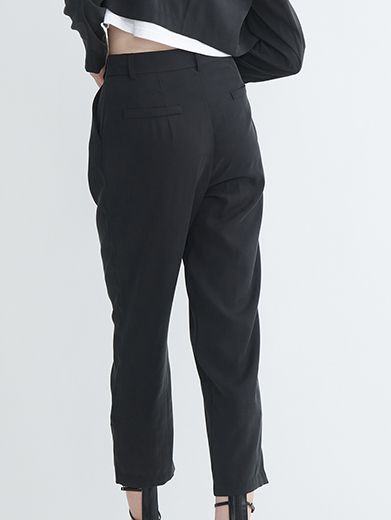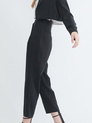 Thiết kế dáng lửng (cropped) hiện đại kết hợp cùng chi tiết pli (ly) tinh tế ở cạp quần không chỉ giúp tôn dáng mà còn mang lại vẻ ngoài thanh lịch và thời thượng, dễ dàng mix-match cho mọi dịp. Đón đầu xu hướng Minimalist Chic.