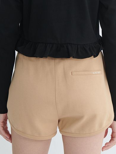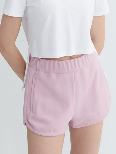 Quần short dáng thể thao với hai túi chéo hai bên, viền cong mềm mại tạo cảm giác năng động và thoải mái. Chất liệu vải dày vừa, co giãn nhẹ, thích hợp để mặc hàng ngày hoặc đi chơi.